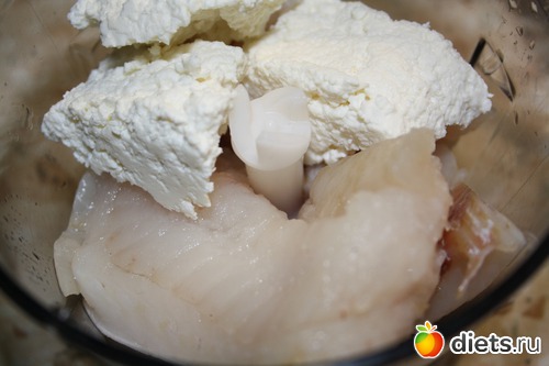 Филе рыбы измельчить с творогом. лучше блендером или на комбайне: