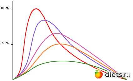Наглядно как скачет сахар в зависимости от выбранного продукта можно посмотреть тут:
