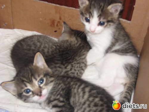 Что касается вопроса куда их потом? Раздаем в хорошие руки. Правда, с каждым разом все труднее найти желающих... Первых "раздали" еще до рождения. А из этих последнюю кисоньку пристроили уже в 4 месяца. Говорят, принимают в магазин, только маленьких( платишь 200 руб за котенка, но если есть "место")