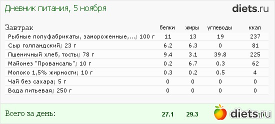 Калорийность продуктов