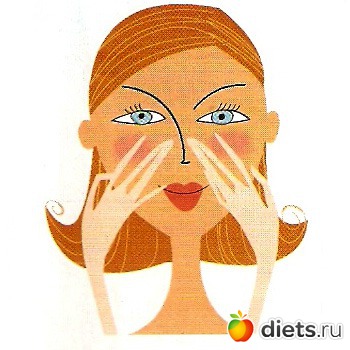 Довольно интенсивно захватывайте большим и указательным пальцами кожу по контуру лица, двигаясь от середины подбородка к мочке уха. Таким же способом проработайте кожу лба от середины к вискам. При сдавливании активизируется внутриклеточный обмен веществ в дерме, и восстановительные процессы в коже идут быстрее.