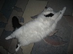 Дружит только со средним дитем, ну как дружит, позволяет себя трогать и иногда вычесывать. И только по его просьбе выполняет команду "Голос!" противно-препротивно.