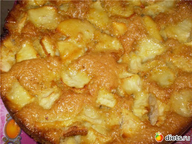 Затем разбиваем 3 яйца- отделяем белок от желтка. Желток смешиваем с сахаром, затем добавляем белок и муку. Все тщательно перемешать. По окончанию полученную смесь вылить в форму и поставить в разогретую духовку (180 гр) на 30-40 минут.