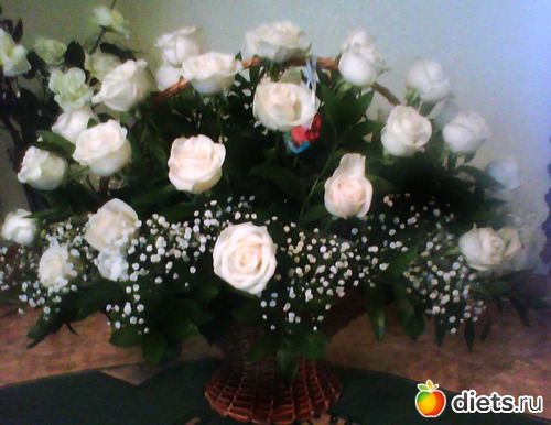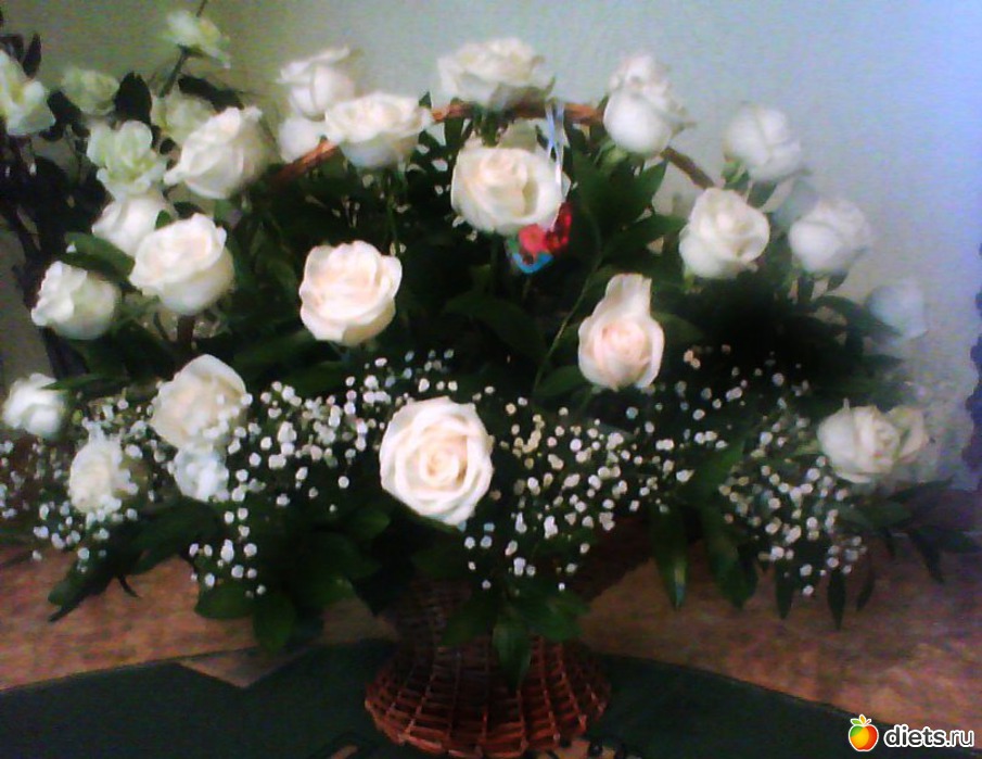 В общем залетаю я домой, а тут такое чудо, 37 голландских белых розочек в корзинке, как я и люблю, точнее какие и люблю