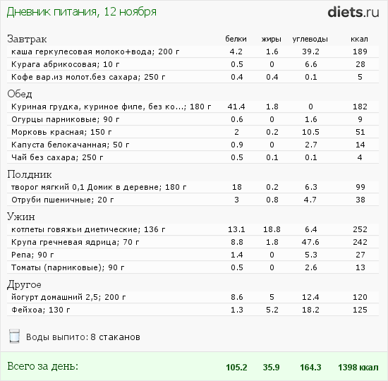 Получился естественный коридор 1200 - 1500 ккал. Я более чем наедаюсь. И чувствую себя намного лучше.