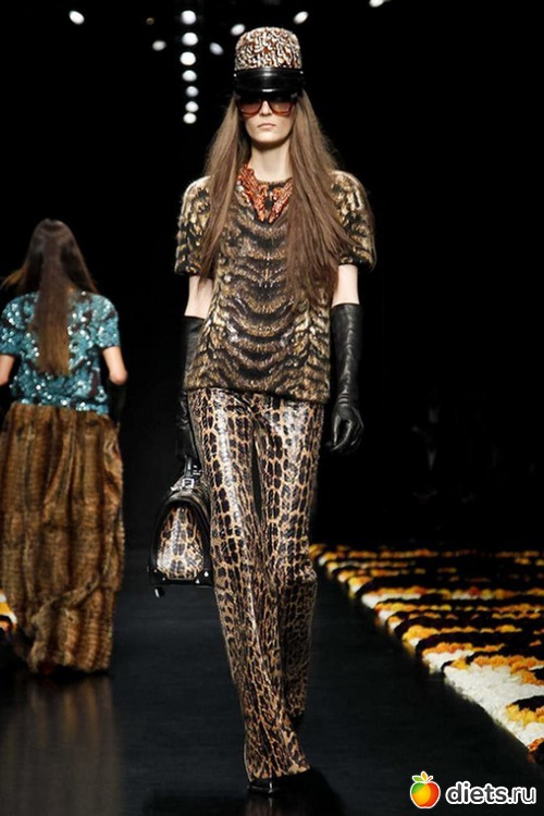 Женские шапки могут быть и по-мальчишечьи дерзкими, если это кепки! Кожаные как нельзя лучше вписываются в ансамбль с макинтошем и высокими облегающими ботфортами. Roberto Cavalli именно так недвусмысленно и рекомендует.