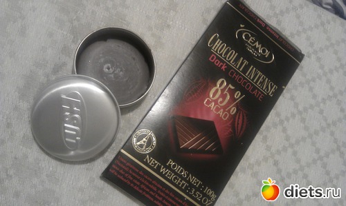 На фоне шоколада, который я использовала. Шоколад, как видите, 85% Взяла я его многовато в этот раз, цвет для меня ярковат, я люблю посветлее. Для съемки пришлось мазаться тонюсеньким слоем, а так-то я люблю погуще))))