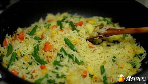 1. Приготовить рис: 1,5 чашки воды на 0,5 чашки риса. Варить пока вода полностью не впитается, затем снять с огня и отложить на время в сторону.