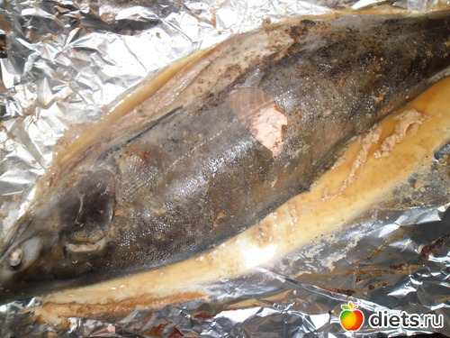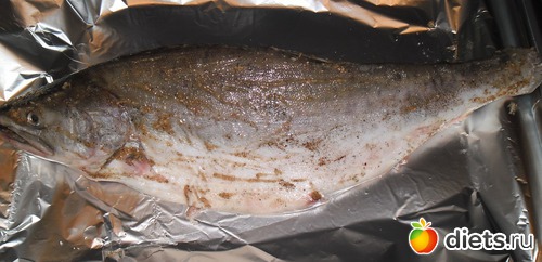 Запекала ее в фольге по рецепту который мне прислала ИринаАрина в предыдущем посте. Натерла ее солью с перцем и намазала горчицей( правда у меня была горчица с хреном, ну ничего, нормально) Вообщем смотрите как получилось