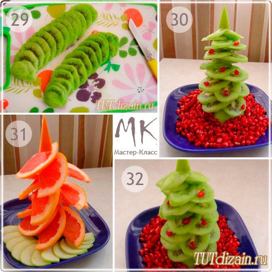 Создавайте елочки не только из овощей, но из фруктов. Можно использовать их в качестве украшения для десертов.