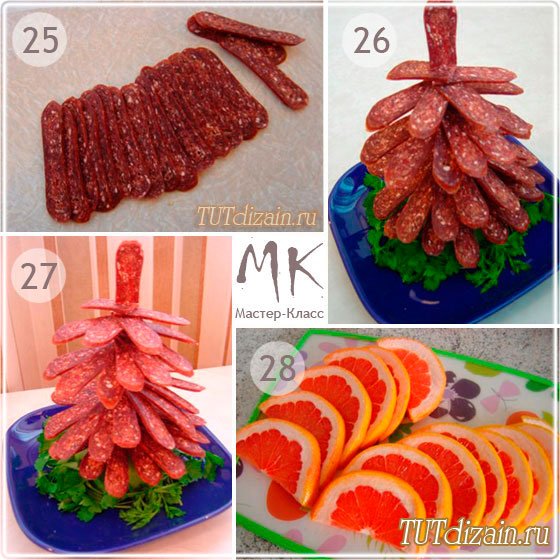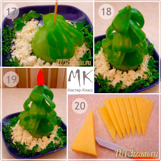 По аналогии можно создать елочку и из свежих огурчиков, только нарезать нужно немного тоньше, так как они будут хорошо держать форму (рис 11).