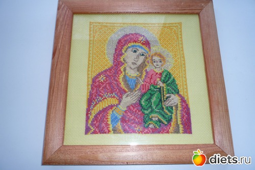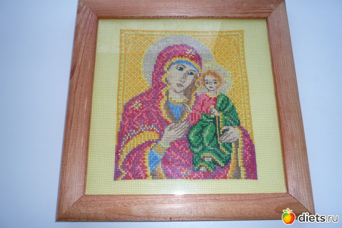 Икону Смоленской Богоматери вышила в подарок маме на Пасху, в храме не освящала.