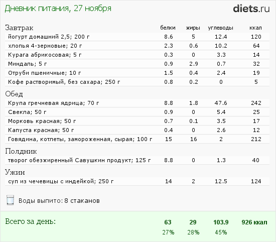 Выяснила, что гречка - страшно калорийный продукт! Как съешь на обед ( а бывает в столовой другого подходящего гарнира и нет), так почти весь план калорий на день и выполнен