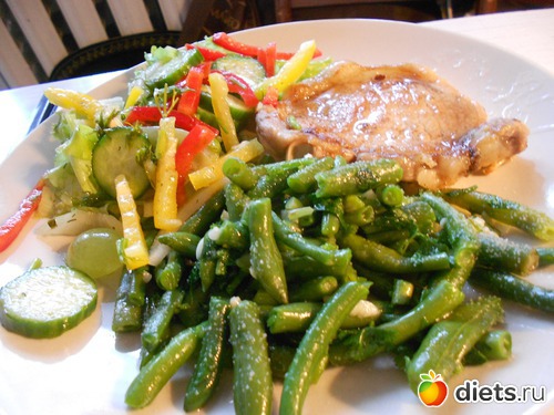 В понедельник у меня был бонус в виде оставшейся отбивной уже с фасолью и салатиком: