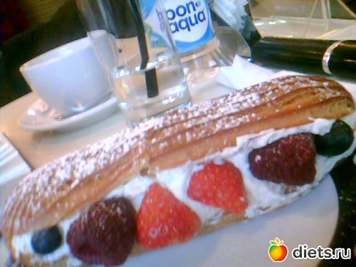 А еще у меня в антистрессовом меню был эклер со сливками и ягодами:
