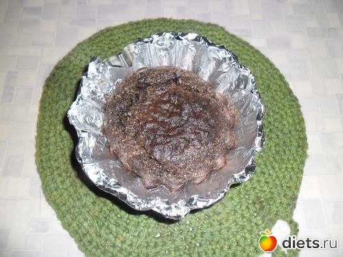 Посмотрите какая у меня вкусняшка получилась!!! Вообще планировалось все немного подругому, вплане выпекания...т.к. по рецепту надо в микроволновке на 3 минуты. А тут оказалось, что у меня нет маленькой формы, поэтому пришлось выпекать в духовке, в форме кекса, что бы неразмазывать по большому диаметру. А так то это бисквит