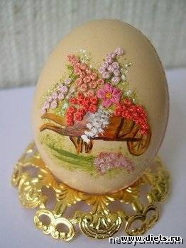 Вышивка очень кропотливое занятие требующие от мастерицы усидчивости и внимания, трудолюбия и настойчивости. Здесь спешка и нетерпеливость сослужат плохую службу. Имея массу свободного времени и желание сделать что-то очень необычное, вы можете начать вышивать. И вышивка ваша будет располагаться не на канве, а на скорлупе яйца.