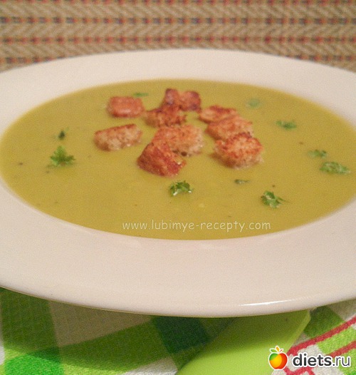 Доварить до готовности картофеля и горошка. Посолить, если считаете нужным. Выключить, слить через дуршлаг бульон и пюрировать овощи, затем ввести маскарпоне и опять пюрировать. Поперчить. Подавать горячим со свежими кростини и полив оливковым маслом. Это совсем не классический рецепт, просто очень легкий и вкусный.