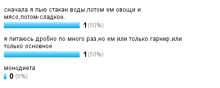 сначала я пью стакан воды,потом ем овощи и мясо,потом-сладкое.