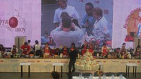 Заплатив, можно было попробовать ассорти из фруктов, политое шоколадом. К слову сказать, на предыдущих фестивалях окунуть в шоколадный фонтан фрукт или зефир посетители могли бесплатно.