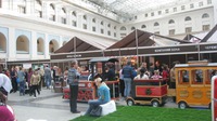 Так как ярмарка проходит в выходные дни, то организаторы позаботились и о маленьких посетителях: работала "Детская кулинарная школа", детский городок с батутами, передвижной театр. А по территории выставки ездил паровозик.