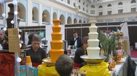 Заплатив, можно было попробовать ассорти из фруктов, политое шоколадом. К слову сказать, на предыдущих фестивалях окунуть в шоколадный фонтан фрукт или зефир посетители могли бесплатно.
