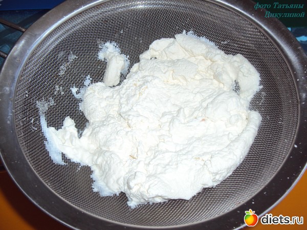 Оставить на ночь. Из литра кефира выходит примерно 300гр. творога. Он без крупинок, похож на творожную массу, консистенция нежная.