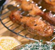 Промаринованные куски рыбы обжарить на гриле по 3-5 мин. с каждой стороны.
