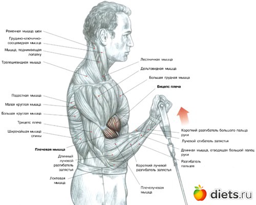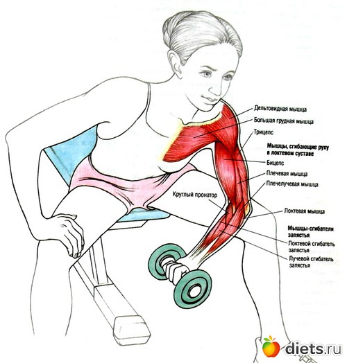 • Плечи должны оставаться неподвижными, являясь как бы частью позвоночника. При полном сгибании рук локти могут немного выступать вперед, чтобы предплечья приняли вертикальное положение.