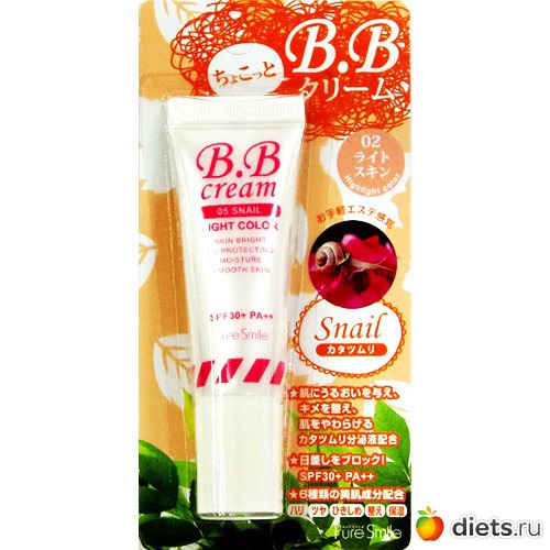 BB крем "Pure smile" содержит экстракт улитки. Он известен увлажняющим, разглаживающим и восстанавливающим эффектом.