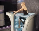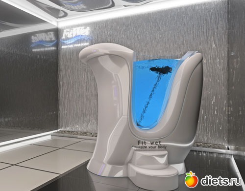 FitWet – помесь джакузи и велотренажера. Собственно, производитель на то и напирает, что получается одновременно крутить педали и проходить сеанс гидромассажа. Обещается, что велотренажер подтянет бедра, ягодицы, причем нагрузка на суставы окажется минимальной. Данный процесс будет иметь место в воде, и именно вода будет оказывать основное сопротивление, так что даже старческие суставы положительно оценят велогонку в ванной. Также, как и положено кардиотренажеру, FitWet будет тренировать систему кровообращения.