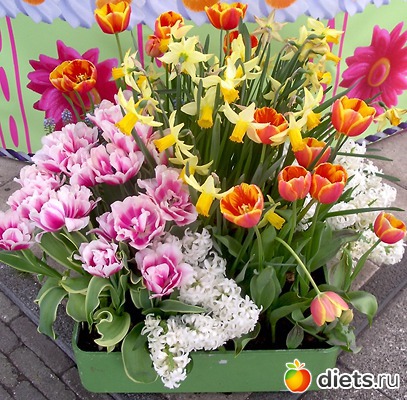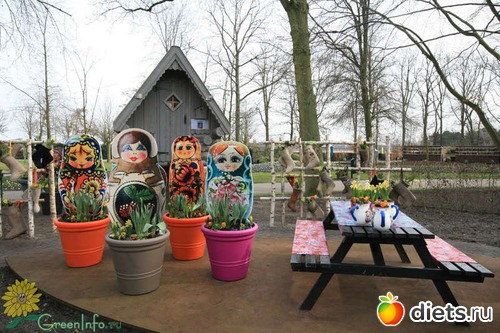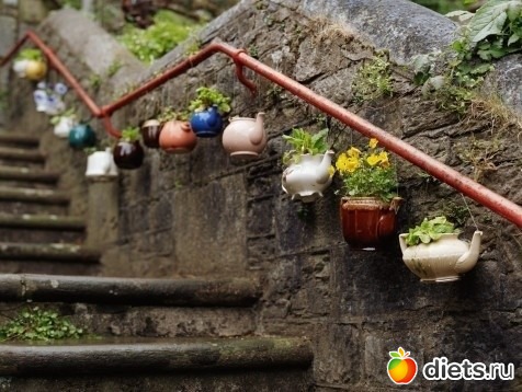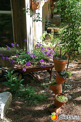 А как вам вот такая композиция - здорово придумали, правда? Только не спрашивайте, "как они держаться" - я не знаю. Это опять же - вопрос к мужьям. По-моему, там еесть единый металлический штырь, продетый через дренажные отверстия (!)