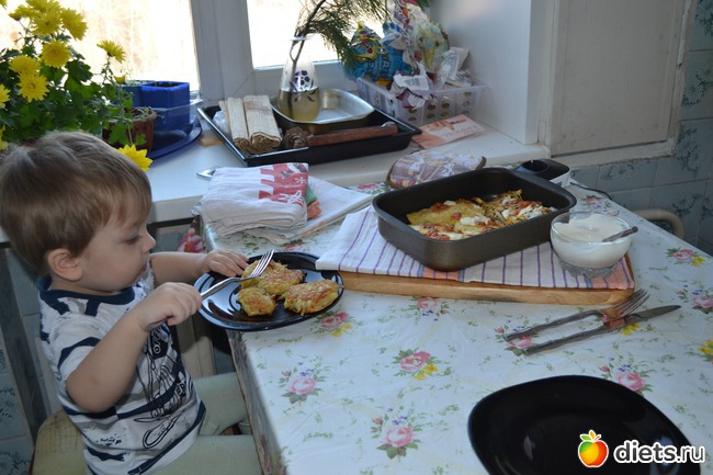 потом все в противень и в духовку на 200 С на 10-13 минут.