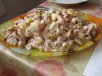 можно заменить картошку(которую нельзя) на рис, еще добавить зеленое яблочко(кисло-сладкое) и заправить легкой сметаной и ложкой горчицы(или домашним майонезом) тогда салатик станет более легким.............