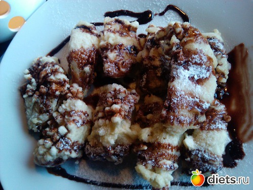 Сегодня наконец-таки состоялся мой поход в сеть ресторанов "Рис" до обеда, что означало - можно отведать один из предложенных завтраков: по-русски, по-английски, по-американски и по-японски ( вроде не забыла ничего).  После долгого изучения меню я заказала японский завтрак: омлет по-японски с кусочками курицы на рисе, яблоки в кляре с шоколадным топингом и зеленый чай. Я в восторге. Хотя есть минус - очень много было лука, ненавижу лук, а они его еще так крупно порезали. Но я все равно в восторге. Подавали по очереди, так что стол не загружался посудой. И не смотря на немного долгое ожидание, все равно люблю "Рис".