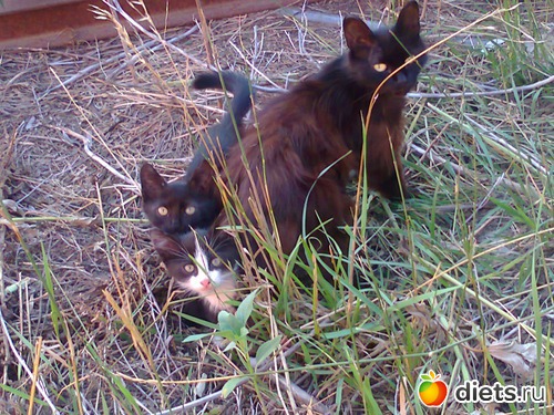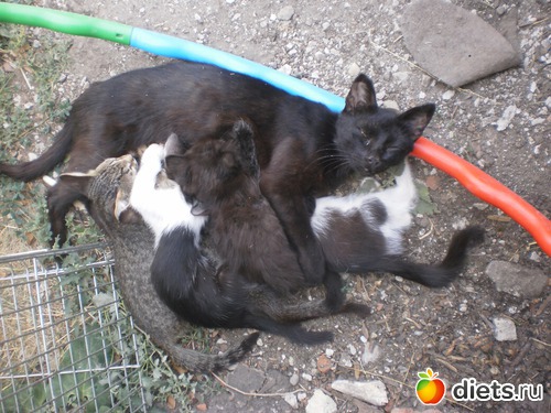 Это Дикуша и ее кисята. Дикуша от Мэри. Очень дикая и старенькая кошечка.