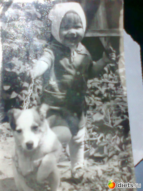 Дружок. Ооо! Этого пса мы приучали меня и братишку катать на санках. Не вышло! Пес умный, быстро освобождался от нас! Фоток с ним много, все естественно на пленке сделаны, вот самые четкие.