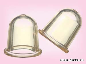 силиконовых банок вакуум внутри них создается путем сжатия боковых поверхностей с последующим «приклеиванием» к коже живота.