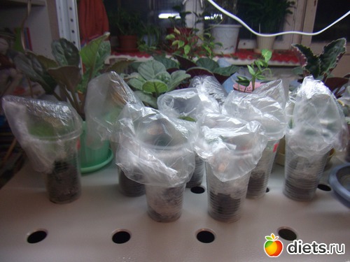Я новичок!!У меня ещё около 20 листиков пока приживаются,Но что то тихо сидят под кулёчками...Когда же они выпустят деток?