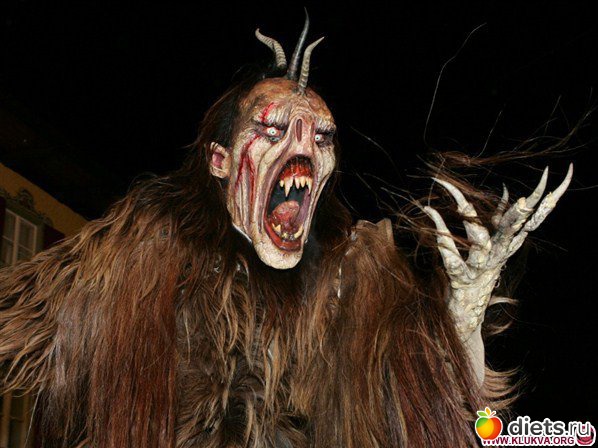 В Австрии существует такой персонаж как Крампус - жуткое страшное существо, которое сопровождает Санта Клауса. И пока Санта Клаус дарит хорошим детям сладости и подарки, Крампус засовывает детей, которые плохо себя вели весь год, вмешок и тащит в ад или к себе в замок, откуда потом выбрасывает их в море.