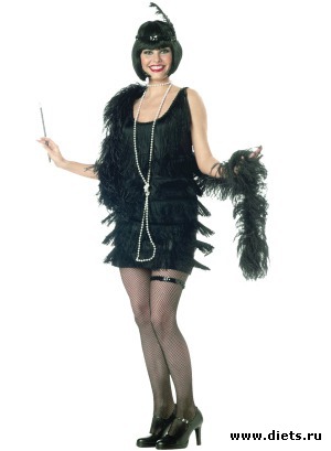 По поводу костюмов – ретро снова в моде! А стиль женской одежды тех годов признается мужчинами, как один из самых сексуальных стилей среди многих поколений! Так что, дамы, берите идеи на вооружение и создавайте неповторимый образ американской красотки 30-х годов. Блесните шелковыми платьями, бриллиантами, ретро-прическами с крупными холодными волнами, меховыми накидками или боа из перьев. Будет шикарно, если вы добудете мундштуки для сигарет, даже если вы и не курите. На голове маленькие шляпки с перьями или повязка-лента с прикрепленным сбоку пером. Колготки в сеточку и туфли на шпильках дополнят образ. Вы будете сногсшибательны!