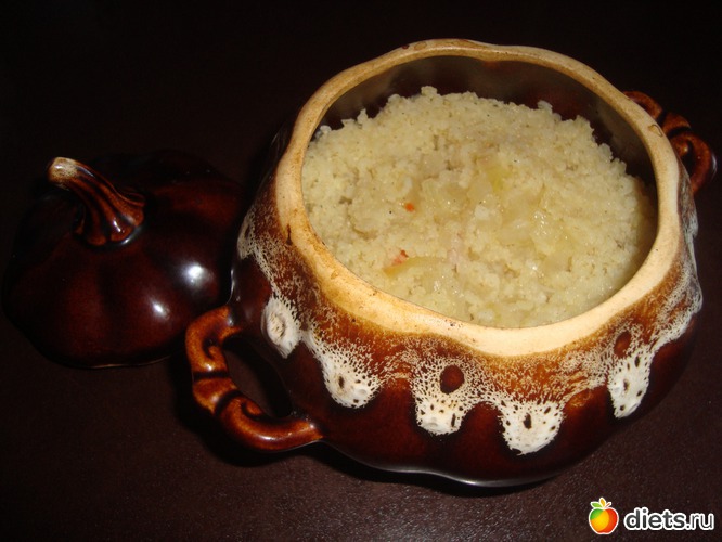 Хорошенько промыть пшено, ошпарить его кипятком для снятия горьковатого привкуса, выложить в горшочек. Можно и другую посуду это особой роли не играет.