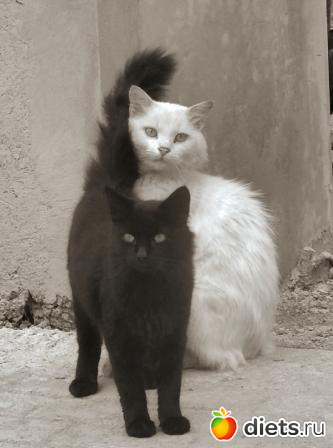 Слева мой кот Фомка (4 кг) и Миланья (3 кг), я давно знаю, если в вашем доме прижилась черная кошка(кот), то это к добру и деньгам. Когда Фомка трется об косяки, я получаю з/п и другой материальный доход.