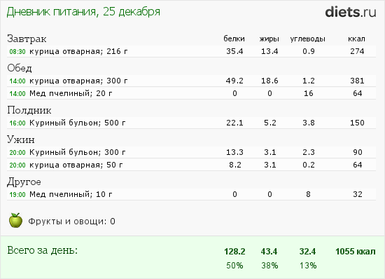 "6 лепестков" день второй (куриный) овощной день прошел на ура! отвес -0,3 кг...во время диеты очень хочется пить...но так как я пью мало воды это даже хорошо...