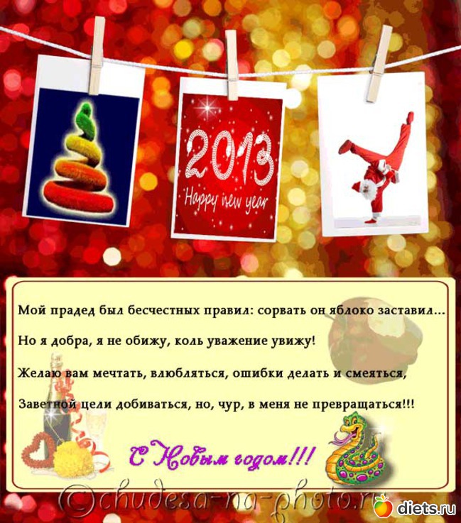 Девочки, это последняя запись-задание в этом году. Так что я заранее поздравляю вас с наступающим Новым годом! Пусть он пройдет незабываемо, все горести останутся в году уходящем, а в новом приятные сюрпризы наполнят вашу жизнь теплом и радостью!