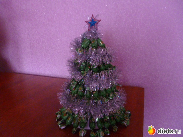 Моя зеленая красавица. Эту елочку я сделала своими руками из подручных материалов.