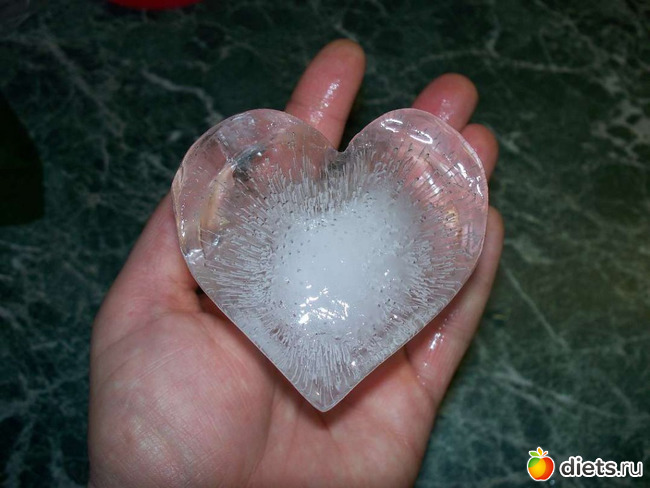 Если вода еще не успела замерзнуть, слейте эту воду. А если замерзло все, что было, то центр сосуда поставьте под струю теплой или горячей воды. Она протопит во льду ямку, где замерзла грязная вода. Это место очень заметно: весь лед в кастрюле более или менее прозрачный, а в середине — белесый.
