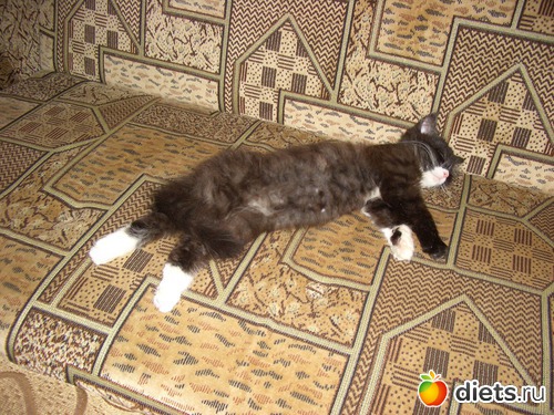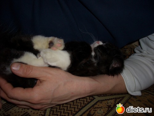 Мол, пусть переночует, а завтра он отнесет ее к себе на работу в гаражи. Но т.к. тогда был сильный мороз (до -15), я пожалела котенка и оставила его. И теперь он живет у нас.