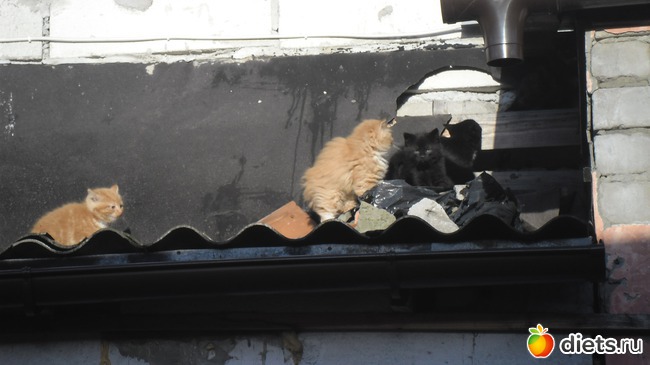 У нас на работе тоже коты семействами носятся, котята-подростки и мамаша с ними, пока заново не запузатит. В морозы они прячутся где-то, а чуть потеплеет - носятся. Особенно забавно смотреть, как черные коты белый свежевыпавший снег топчут.