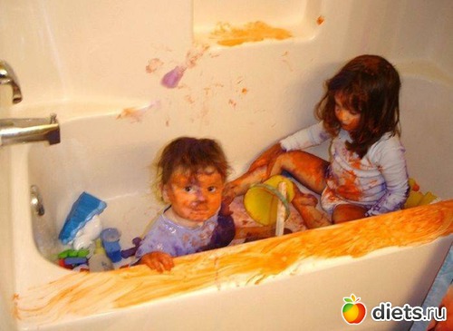 ну вот тока в комнате порядок, на кухне дел полно, отведем ребенка в ванну и умоем там его,